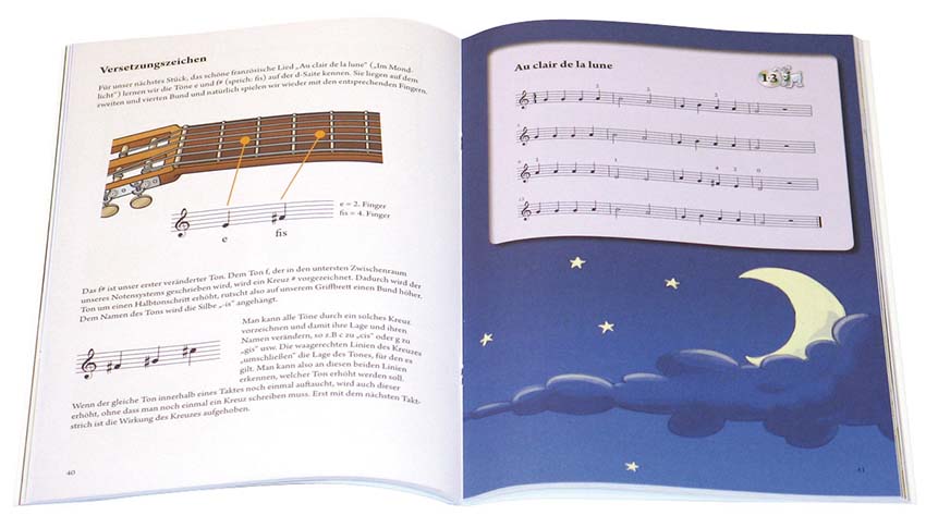 Gitarre lernen mit viel Spaß und mit Little Amadeus, seiner Schwester Nannerl und seinem Freund Kajetan. Gemeinsam mit den Dreien lernt der junge Gitarrist die Grundlagen des Gitarrenspiels und der Musik. Lustige Illustrationen, Ausmalbilder, Lieder und Geschichten sorgen dafür, dass die Freude am Lernen und Musizieren von Anfang an die „erste Gitarre“ spielt. Melodiespiel, leichte Akkordbegleitungen und ein einfacher Einstieg in die Notenschrift geben für angehende Virtuosen beste Grundlagen zum weiteren Spielen und Lernen. Eine zusätzliche Übungs- und Motivationshilfe ist die beiliegende liebevoll produzierte CD, die das Üben zum Kinderspiel macht.