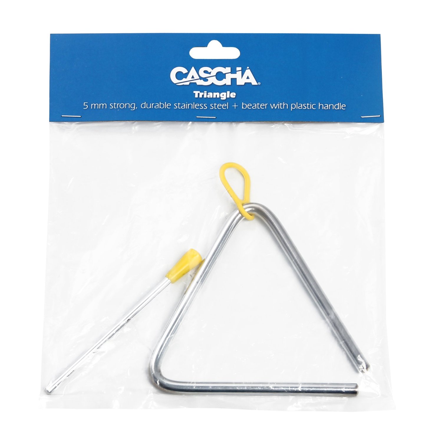 Die CASCHA Triangel besteht aus einem Stahlstab, der zu einem gleichseitigen Dreieck gebogen ist (eine Seite ist offen). Eine Schlaufe ermöglicht das bequeme Halten der Triangel während des Spielens. Darüberhinaus sorgt der Gummigriff des mitgelieferten Metallschlägels für optimalen Spielkomfort. Auch in der musikalischen Früherziehung, Musiktherapie oder im Schulunterricht werden sie gerne eingesetzt. Die hochwertige Verarbeitung und der angenehme Klang der CASCHA Triangel begeistern Lehrer, (Musik-)Schüler und Musiker gleichermaßen. Die Triangel ist für Kinder ab 3 Jahren geeignet.