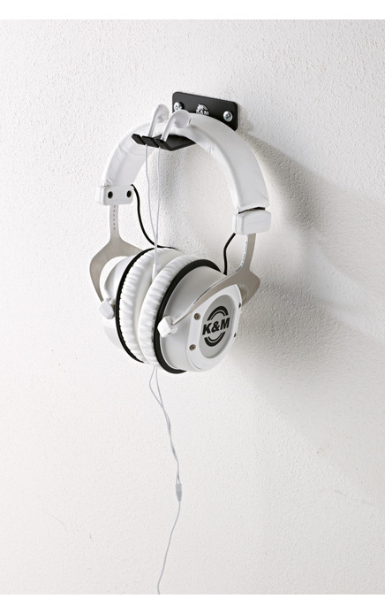 Kleiner kompakter Kopfhörerhalter aus pulverbeschichtetem Stahlblech zur Wandbefestigung. Sorgt für Ordnung auf dem Tisch, und der Kopfhörer ist immer griffbereit. An der geschlitzten Stirnseite können zusätzlich zwei In-Ear-Kopfhörer komfortabel eingehängt werden. Zum Befestigen an der Wand sind Dübel und Schrauben beigefügt.