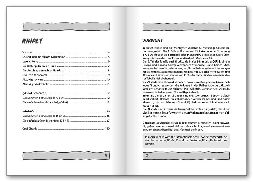 Zusätzliche Hinweise zur Spieltechnik der linken und der rechten Hand, übersichtliche Grafiken und Erklärungen zu Akkordsymbolschrift und Akkordsynonymen machen gemeinsam mit den praktischen Stimmdiagrammen für die jeweilige Stimmung diese Grifftabelle zum idealen Begleiter für jeden Ukulelespieler!