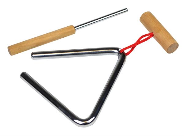Diese Triangel mit griffigem Haltegriff aus Holz und Metallstab zum Anschlagen bietet endlose Möglichkeiten, Klänge wie das Hämmern einer Schmiede oder eine Schiffsglocke zu imitieren. Natürlich kann die glockenhelle Triangel auch als Essens-Signal verwendet werden oder einfach die tobende Kinderschar zur Ruhe ermahnen ...