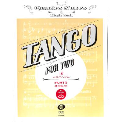 TANGO – das ist das Album des World Music Ensembles Quadro Nuevo, das nach einer „Buenos-Aires-Expedition“ zusammen mit dem Pianisten Chris Gall veröffentlicht wurde. TANGO FOR TWO – das ist die daraus entstandene Sammlung von 12 Tangos für die spannende „Duo-Besetzung“. Neben Eigenkompositionen wurden unter anderem Stücke von Ángel Villoldo (El Choclo), Carlos Gardel (Por una cabeza, El día que me quieras) und Astor Piazzolla (Libertango, Oblivion) für das Duospiel arrangiert. Die Reihe ist erhältlich für Tenorsaxophon, Altsaxophon, Klarinette, Trompete, Flöte, Violine und Violoncello, wahlweise in der Besetzung Solo + Piano oder Solo mit CD. Die CD beinhaltet alle 12 Titel als Play-along- und Duo-Versionen. Die Arrangements von Mulo Francel und Chris Gall liegen im mittleren Schwierigkeitsgrad.