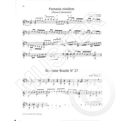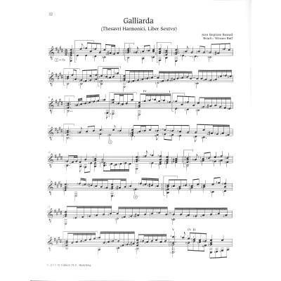 Diese Ausgabe enthält Kompositionen von Pierre Attaignant, Adian Le Roy, Jean Baptiste Besard, Antoine Francisque, Guillaume Morlaye, Robert Ballard und Jean Paul Paladin.