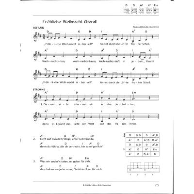 Endlich können auch weniger Geübte Advents- und Weihnachtslieder begleiten, ohne vor dem F-Griff kapitulieren zu müssen. Alle Lieder sind hier ohne einen einzigen Barré-Griff problemlos spielbar! Die Griffbuchstaben stehen nicht nur über den Notenzeilen, sondern auch über allen Textstrophen. Damit können Sie sofort „vom Blatt“ spielen.