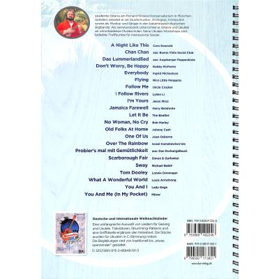 Dieses Buch beschäftigt sich mit der Ukulele als Begleitinstrument. Sowohl bei der Auswahl der Akkorde als auch bei den Strummings geht es um Spaß und Freude mit Musik. So entstanden bei manchen Liedern neue oder bisher unbekannte Klänge, während bei den Popsongs die Originalakkorde verwendet werden. Auf der MP3-CD gibt es zu den meisten Songs 3 Versionen: Die Hörversion, auf der im Arrangement alle Instrumente zu hören sind, eine Version ohne Ukulele zum Mitspielen und eine Version, auf der nur der Gesang und die Ukulele zu hören sind.