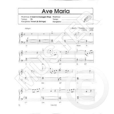 Ave Maria - Deutscher Tanz - Die Moldau - Freude schöner Götterfunken - Minutenwalzer - Schwanensee - Peter und der Wolf - Liebestraum - Fröhlicher Landmann - Marsch aus Carmen - Te Deum von Charpentier - Deutscher Tanz von Beethoven - Tristesse und weitere