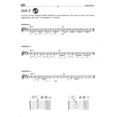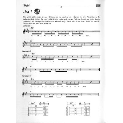 In drei weiteren Kapiteln werden anhand von fünf eigenen Songs und diversen Licks besondere Techniken erarbeitet: Akkordlicks, Single-Note und Double-Stop-Licks und Spezielle Licks u. a. mit Ghost Notes. Jeden Lick umfasst eine kurze Definition, die ihn in den zeitlichen Kontext einordnet, die Akkordbilder der verwendeten Tonarten und die Rhythmen sind in Tabulatur und Notenschrift ausnotiert. Jeder Lick ist vom befreundeten Bassisten Frank Itt („Hip Bass“) eingespielt und kann auf der CD einzeln angespielt werden. Damit wird dem Musiker, der eine technische und theoretische Grundkenntnis haben sollte, eine große Sammlung an Begleitrhythmen an die Hand gegeben um seine rhythmischen Fähigkeiten zu trainieren.
