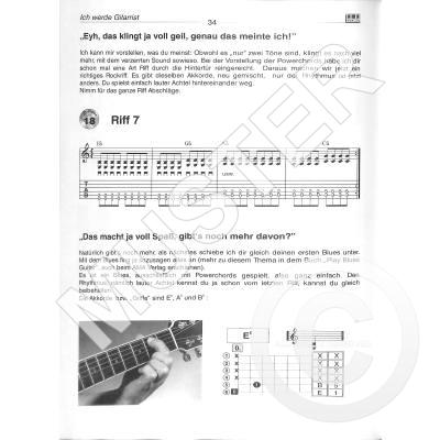 Der Autor geht didaktisch sinnvoll und mit Humor an den Stoff heran, er begibt sich mit dem Schüler auf eine Reise in die Welt der Gitarre. So werden im Kapitel 1 die verschiedenen Gitarrenarten vorgestellt und die ersten Riffs und Songs geübt. In Kapitel 2 lernt der Schüler Powerchords und mit neue Akkorde und Anschlagstechniken geht die Reise in Kapitel 3 weiter. Zu allen diesen bluesigen und rockigen Riffs gibt es immer entsprechend schwierige Songs, um das gerade Gelernte zusammenzufassen und zu festigen. Die sonst in Lehrbüchern zu Beginn thematisierten Basics (Notenschrift, Notensystem, Rhythmuspyramide etc.) stellt Kumlehn an das Ende des Buches, so dass der Schüler sich ganz auf das Spielen konzentrieren kann.
