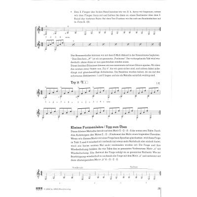 Die Schule gliedert sich in sechs übergeordnete Teile: Teil 1 stellt das Instrument vor, die ersten Übungen auf leeren Saiten und der erste Akkord werden erlernt. Dabei wird der Schüler von Anfang an dazu angeleitet, alle vier Anschlagsfinger beim Spielen der Akkorde zu benutzen und auf der theoretischen Ebene alle Noten auch als vertikale Gebilde zu begreifen.