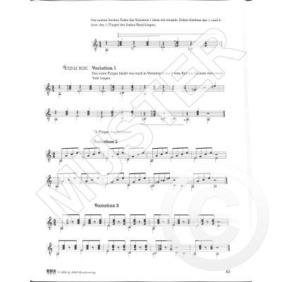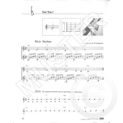 Die didaktischen Anmerkungen für den Lehrer beginnen mit allgemeinen Hinweisen zu möglichen Unterrichtssituationen und Unterrichtsmodellen. Fast zu jedem Unterkapitel der Teile 1 bis 5 und 7 (Anhang) gibt es Erklärungen mit Seitenangaben, so dass der Lehrer den Lernstoff schnell finden kann. Viele detaillierte Fotos (z. B. vom Aufziehen der Saiten) geben dem Lehrer Aufschluss über richtige Handhabung, Haltung und Fingerstellung. Der ausführliche Anhang (mit einer Zusammenfassung der gelernten Töne, Grundakkorde, Stammtöne und einem Übeplan) runden das Buch mit der beigefügten CD, in der die Stücke in einem sehr langsamen Tempo zum Üben eingespielt sind, ab.