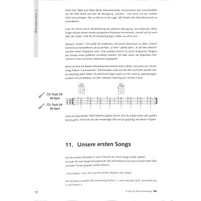 In jedem neuen Stück werden zudem neue Anschlagsarten gelernt, wie „Country-Strum”, „Swing-Strum” und Strumming. Fotos verdeutlichen zusätzlich noch die Unterschiede zwischen falscher und richtiger Griffweise, Haltung und Spielweisen.