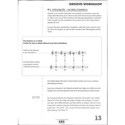 Nach dieser Einführung, in der die Schüler auch drei unterschiedliche Spieltechniken der Akkorde (Mono, Stereo und Surround) erklärt bekommen, geht es in Teil B an eine Auswahl von Groove-Beispielen. In 6 Kapiteln werden die unterschiedlichsten Stile vorgestellt und mit möglichen Rhythmus-Pattern zum Leben erweckt. Eine Auswahl sei hier genannt: Marsch, Foxtrott, Tango, Rumba, Soul, sparsame Begleitung in Balladen, Blues, Rhythm ‘n‘ Blues, Jazz, Latin-Grooves, Hard-Bop-Shuffle, Boggie-Woogie-Bässe, New-Orleans-Blues, Swing-Jazz-Walking-Bass, Swing, Walzer und Jazz-Akkorde.