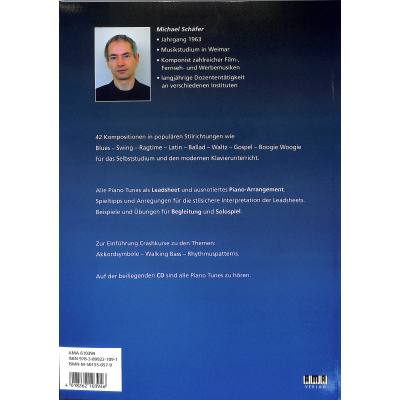 Michael Schäfer hat 42 Tunes komponiert, die idealtypische Merkmale der Musikstile Blues, Swing, Ragtime, Latin, Ballad, Waltz, Gospel und Boogie enthalten. Die Stücke können dabei nach folgendem pädagogischen Ansatz erarbeitet werden: Es gibt ein Leadsheet, in dem sparsam eingesetzte Anmerkungen wichtige Tipps zu Spielanweisungen und Interpretationsmöglichkeiten geben, zudem gibt es Informationen zu Herkunft und Entstehung der Musikstile. Im zweiten Abschnitt gibt es ein ausnotiertes Klavier-Arrangement, welches nur eine mögliche Spielweise darstellt. Bei fünf Stücken findet sich auch eine ausnotierte Klavier-Begleitung, so dass manche Stücke aus den verschiedenen Musikstilen (Swing, Ballad, Latin, Waltz) als Duett mit einem Melodieinstrument gemeinsam erarbeitet werden können. Angaben zu Tempo, Phrasierung, Wiederholungen, Intro und Outro fehlen, damit der Klavierspieler seine Interpretation selbstständig gestalten kann. Ein den Tunes vorgestellter Crashkurs über Akkordsymbole, Walking Bass und Rhythmuspatterns dient dabei als Grundlage, um die Tunes entsprechend spielen zu können. Der Schwierigkeitsgrad der Stücke reicht je nach Stilrichtung von leicht bis mittelschwer, so dass der Spieler innerhalb des Buches Fortschritte machen kann. Durch die Notation in Leadsheet-Form kann dieses Buch auch von Keyboard- oder Orgelspielern verwendet werden.
