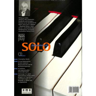 Die Bücher „First Solo“ (610154) und „Advanced Solo“ (610159) beschäftigen sich beide mit der speziellen Bedeutung des Begriffs SOLO-Piano, der im Zuge der Entwicklung im modernen Jazz eine besondere Bedeutung erhalten hat. Die Pianisten haben sich in ihrem improvisatorischen Spiel durch eine selbstständigere solistische Darbietung „emanzipiert“ und ihr Spiel fungierte nicht mehr nur als Begleitung. Um ein Meister der Improvisation zu werden, benötigt der Pianist aber Spielerfahrung und handwerkliche Fähigkeiten. Beides lernt der Schüler in diesen zwei Bänden. Die Stücke sind Eigenkompositionen, die eine stilistische Bandbreite umfassen, da sie neben der Spielweise der klassischen, romantischen und zeitgenössischen E-Musik auch Folklore-, Jazz- und Pop-Elemente miteinander vereinen. Die 13 Stücke in „First Solo“ kommen ohne Improvisation aus, ebnen aber schon durch harmonische Analysen, Erläuterungen zum melodischen Tonmaterial und durch Beispiele für Variationsmöglichkeiten den Weg zur Improvisation, die bei den 10 Stücken im „Advanced Solo“ zum Einsatz kommt. Vervollständigt werden diese Stücke durch Anleitungen zu eigenen Improvisations-Studien und Erläuterungen zu Skalen und Spieltechniken.