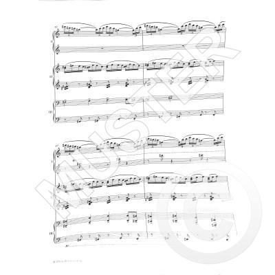 Das virtuose und pianistisch anspruchsvolle Werk baut sich stets aus mehreren Ebenen auf, die gegen- oder übereinander strukturiert sind und die jeweils unterschiedliches Material enthalten, sodass man immer verschiedene Arten von Musik gleichzeitig hört.