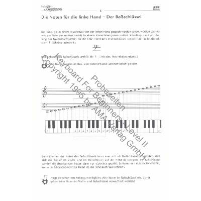 Die dreibändige Reihe „Keyboard for Beginners“ von Karsten Sahling ist für alle Tasteninstrumente mit und ohne Begleitautomatik geeignet. Die Mischung aus Eigenkompositionen und Popstücken, die der Autor mit rhythmisch interessanten Melodien versieht, bilden ein erfolgversprechendes Konzept. In der Liste der Übungen finden sich aber auch angloamerikanische Traditionals und Klassikbearbeitungen von Johann Sebastian Bach, Jacques Offenbach und anderen. Diverse Testaufgaben vertiefen das Erlernte und die Hörbeispiele auf den Midi-Files können im Tempo beliebig gewählt werden, so dass der Schüler die Möglichkeit hat, sich an die Originalgeschwindigkeit heranzutasten.