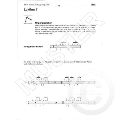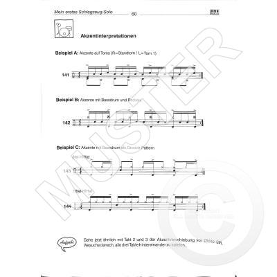 Mit “Mein erstes Schlagzeug-Solo” wird die dreibändige Schlagzeugschule “Ich werde Schlagzeuger!” (AMA-Nr. 610416) abgeschlossen. Nachdem der zweite Band sich auf das Thema „Ich spiele Schlagzeug in einer Band“ (AMA-Nr. 610183) spezialisiert hat, wird nun im dritten Band das Solo-Spiel behandelt. Mit dem roten Faden, der sich durch dieses Heft zieht, will Christian Nowak kreative Systeme entstehen lassen, mit denen verschiedene Kombinationen und Variationen nach bestimmten Mustern durchgespielt werden können. In zehn Lektionen geht es dabei um Themen wie: 2er-, 3er- bis zu 8er-Gruppen und ihre Kombinationen, Akzentverschiebungen und deren Interpretationen und die Unabhängigkeit der Füße. In vier Solo-Stücken kann der Schüler alles Gelernte anwenden. Ziel des Schlagzeugers soll es sein, neue Figuren und rhythmische Melodien kennenzulernen, und daraus etwas Neues zu entwickeln – seinen eigenen Stil. Für Fortgeschrittene stellt der Autor reichlich ausnotiertes Solo-Material zur Verfügung und es gibt unzählige Übungen, mit denen die Ausdauer und Geschwindigkeit erhöht werden können. In allen seinen Übungen vermittelt der Autor das „Feeling“ für die Soli, die – je nach Anlass, Publikum oder Funktion im Stück – ganz unterschiedlich gestaltet werden können. Auf der CD sind Beispiele und Begleitsequenzen enthalten. Die Endlosschleifen der ‚Percussion-Lines‘ und ‚Jam Loops‘ bieten die Möglichkeit zum Mitspielen und Improvisieren.
