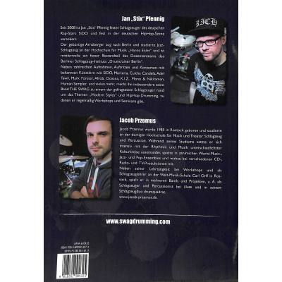 Die fest in der deutschen HipHop Szene verankerten Schlagzeuger Jan „Stix“ Pfennig (arbeitete u. a. zusammen mit SIDO, Marteria, Culcha Candela, Adel Tawil, Mark Forster, Afrob, Oceana, K.I.Z., Mono&Nikitaman, Human Sampler) und Jacob Przemus (Bandmitglied bei illute und drumquadrat) haben ein Buch geschrieben, das die junge Generation in die Geheimnisse des SWAG-Drummings einführt. Pfennigs Lehrererfahrungen als Dozent des Berliner Schlagzeug-Instituts „Drumtrainer Berlin“ und Przemus‘ Lehrtätigkeit bei Workshops und als Lehrer an der Welt-Musik-Schule Carl Orff in Rostock fließen ebenso in dieses Lehrwerk mit ein wie die Erfahrungen aus unzähligen Live- und Studio-Auftritten und Workshops zum Thema „Modern Styles“ und HipHop-Drumming.