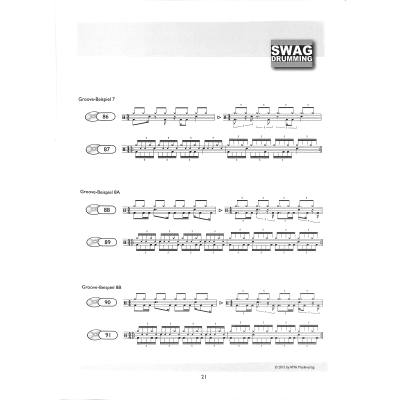 Das Swag-Drumming als Inspirationsquelle für unzählige Drummer geht auf eine traditionelle Spielweise zurück, die im New Orleans Swingfeel entstand und sich mit dem Inbetween-Feel an die heutigen HipHop- und Pop-Grooves angepasst hat. Diese Spielart definiert sich als ein Rhythmus, der zwischen einem binären und ternären Rhythmus liegt. Weil die Wahl von Quintolen diesem Feel am nächsten kommt, haben die Autoren eine greifbare Methode gefunden, diese komplexen Rhythmen auf eine spielerische Art dem Schlagzeuger näher zu bringen.