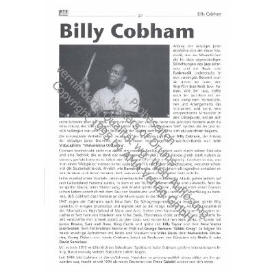 Wie schon in den anderen Büchern der Masters-Reihe werden die Musiker mit einer Biographie und ihren verwendeten Stilistiken, Tonmaterial und Equipment/Sound vorgestellt. Danach notieren die Autoren bis zu 3 Licks mit Erklärungen und Tipps zu Techniken, Stickings und Phrasierungen, die typisch für diese Musiker waren. Die Autoren haben sich unter anderem für folgende Drummer entschieden: