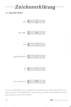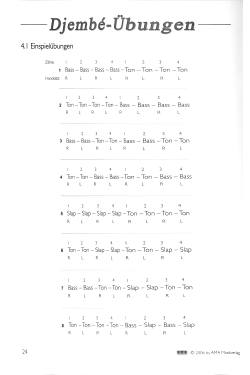 Im Praxis-Teil werden alle Grundspieltechniken in Noten, Wort, Bild und Ton erklärt. So geht es nach der Einführung zu Schlagtechniken, Spielpraxis und Zeichenerklärungen ans Spielen: nach den einfachen Djembé-Übungen geht es weiter mit Djembé-Grooves für Fortgeschrittene (16tel, Shuffle und Akzente) und Djembé-Melodien. Hier werden die traditionellen Standardbegleitungen von Musikformen wie Kondumba, Bambino, Bumba, Filia oder Déjá-vu vorgestellt und eingeübt. Eine CD dient als hilfreiche Orientierung bei der rhythmischen Umsetzung der Stücke.