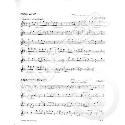 Technische Aspekte (wie Oktavwechsel, Doppelpunktierung), die für den Schüler neu hinzukommen, werden an bekannten kleinen Stücken eingeübt, so dass der Schüler mit bekannten Melodien viel Spaß am Üben hat. Hier eine kleine Auswahl: „La Donna è mobile“ aus Rigoletto von G. Verdi, Papagenos Arie „Der Vogelfänger bin ich ja“ von Wolfgang Amadeus Mozart, der Einzug der Toreros aus „Carmen“ von G. Bizet, der Pilgerchor aus „Tannhäuser“ von R. Wagner, „The Pink Panther“ von Henry Mancini, „Can-Can“ von J. Offenbach, „Joshua Fit De Battle Of Jericho oder „House Of The Rising Sun“. 20 Stücke dieses Bandes sind mit einer Klavierbegleitung versehen, so dass der Lehrer die Möglichkeit des gemeinsamen Musizierens in seinen Unterricht einbringen kann. Auch in diesem Band gibt es einen Anhang, in welchem die Griffe aller wichtigen Töne anhand von Griffdiagrammen nachzuschlagen und nachzuvollziehen sind. Auf der CD (inklusive Playbacks) sind die Übungen mit unterschiedlichen Begleitsounds eingespielt, so dass der Schüler sein musikalisches Bewusstsein erweitern kann.