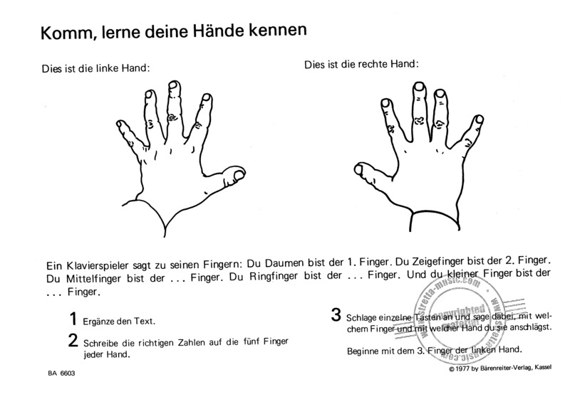 141 Lernschritte, Zeichnungen, Tafeln und Puzzles. Spielendes Lernen von Hand- und Fingerhaltung, Geläufigkeit und Konzentration.