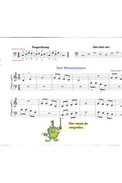 Die Stücke sind so konzipiert, dass nur jeweils eine Hand benötigt und somit die Spielsicherheit gefestigt wird, ehe das zweistimmige Spiel beginnt. Schreib- und Hausaufgaben runden diese Klavierschule ab. Klavierspielen mit Spaß und kinderleicht!