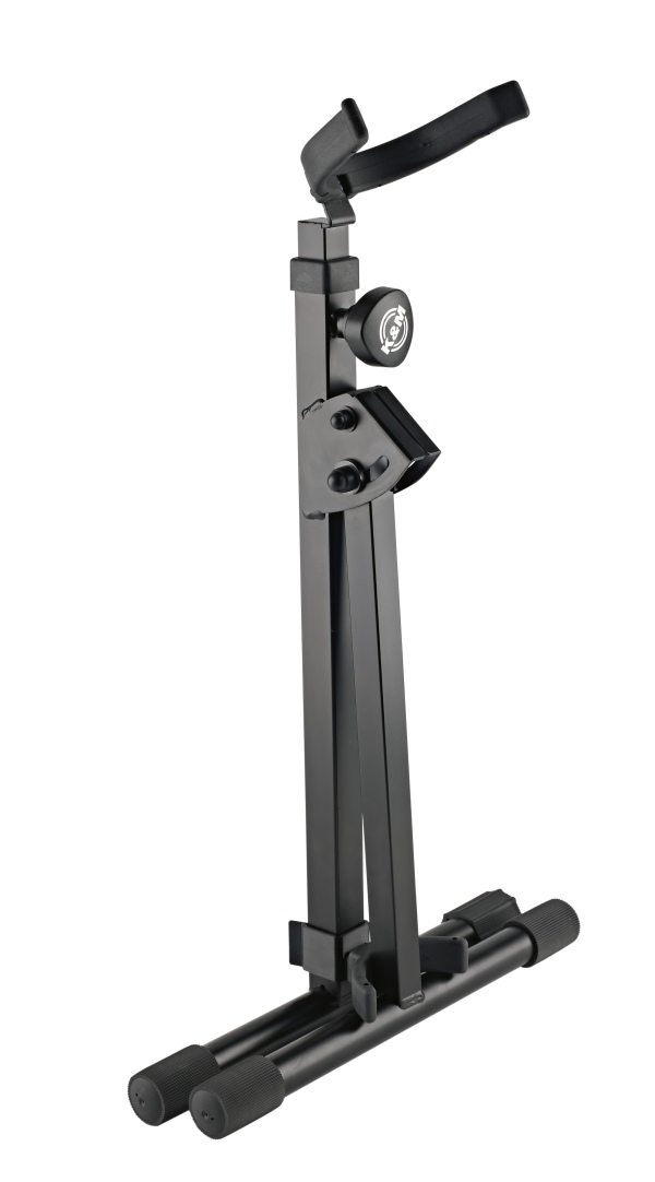 Extrem stabiler und robuster Ständer für Bariton-Saxophone. Die solide Metallkonstruktion hält das Saxophon garantiert sicher und zuverlässig in Position. Die Instrumentenaufnahmen sind komplett mit Gummi ummantelt und schützen das Instrument vor dem Verkratzen. Die obere Aufnahme für den Schalltrichter ist in der Höhe in 12 Positionen von 650 bis 920 mm einstellbar. Die untere Aufnahme kann zudem stufenlos und individuell für jedes Modell positioniert werden. Ein Ausgleichsparkettschoner sorgt für einen stabilen Stand. Die widerstandsfähige Pulverbeschichtung ist besonders langlebig.