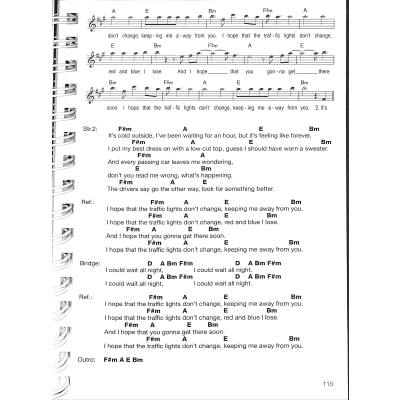 Jeder einzelne Song ist zwei Mal notiert: Einmal mit Melodielinie und Akkorden, dazu als Text mit Akkorden.