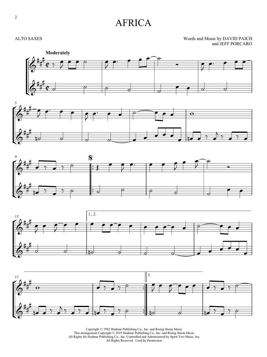 23 timeless hits in easy duet arrangements for two instrumentalists are featured in this collection, including: Africa • Every Breath You Take • I Still Haven't Found What I'm Looking For • Imagine • Jessie's Girl • The Sound of Silence • Sweet Caroline • and more. Arrangements work for two saxes or can also be used with the other woodwind or brass titles from this series.