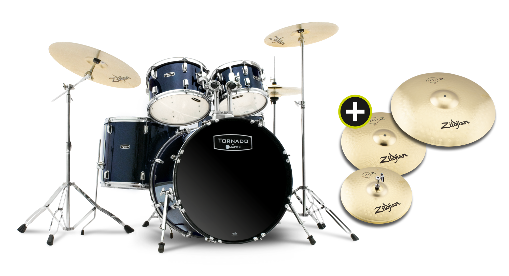 MAPEX Komplettset, Tornado, Stage, Zildjian Planet Z Bundle, Royal Blue