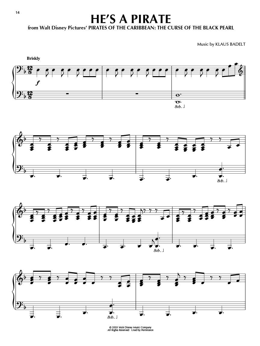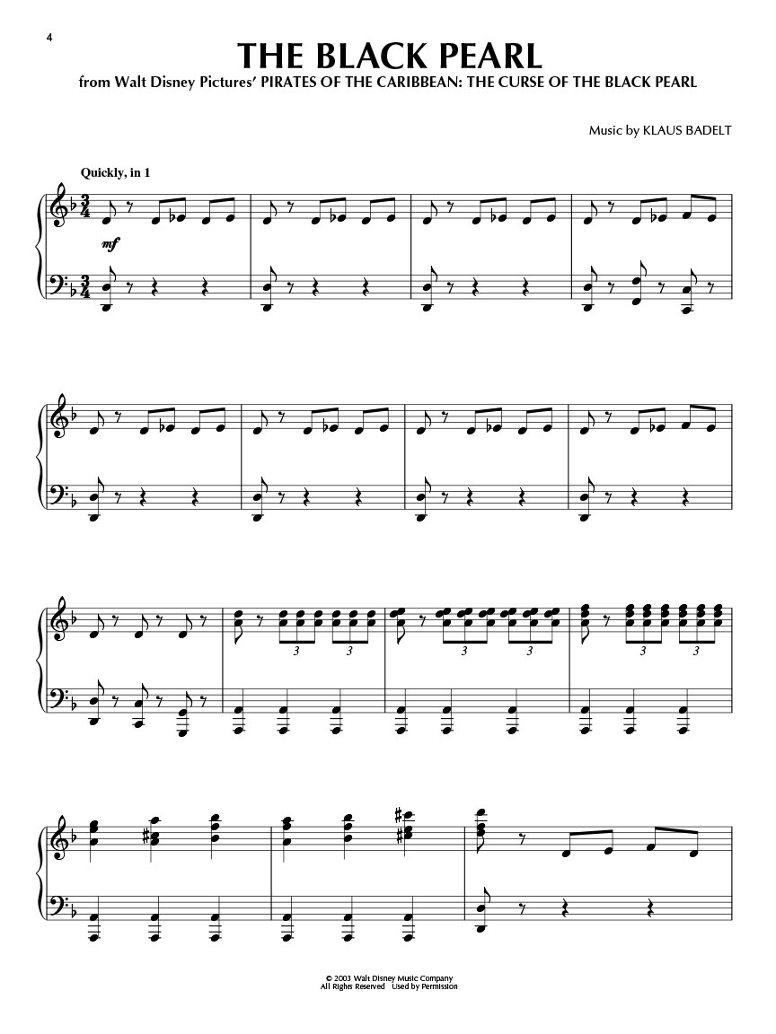 Includes: The Black Pearl • Davy Jones • He's a Pirate • I've Got My Eye on You • Jack Sparrow • The Kraken • The Medallion Calls • Two Hornpipes (Fisher's Hornpipe).