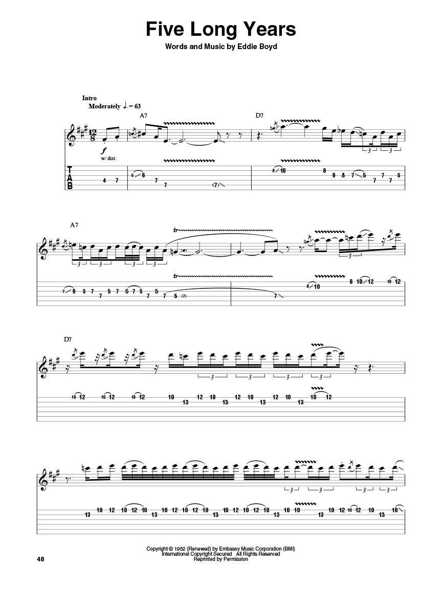 The Guitar Play-Along Series will help you play your favorite songs quickly and easily! Just follow the tab, listen to the audio to hear how the guitar should sound, and then play along using the separate backing tracks. The melody and lyrics are also included in the book in case you want to sing, or to simply help you follow along. The audio is accessed online using the unique code inside each book and can be streamed or downloaded. The audio files include PLAYBACK+, a multi-functional audio player that allows you to slow down audio without changing pitch, set loop points, change keys, and pan left or right. This volume features: Catfish Blues (Jimi Hendrix) • Dirty Pool (Stevie Ray Vaughan) • Don't Throw Your Love on Me So Strong (Albert King) • Five Long Years (Eric Clapton) • Have You Ever Loved a Woman (Freddie King) • (They Call It) Stormy Monday (Stormy Monday Blues) (T-Bone Walker) • The Things That I Used to Do (Eddie “Guitar Slim” Jones) • Three Hours Past Midnight (Johnny “Guitar” Watson).