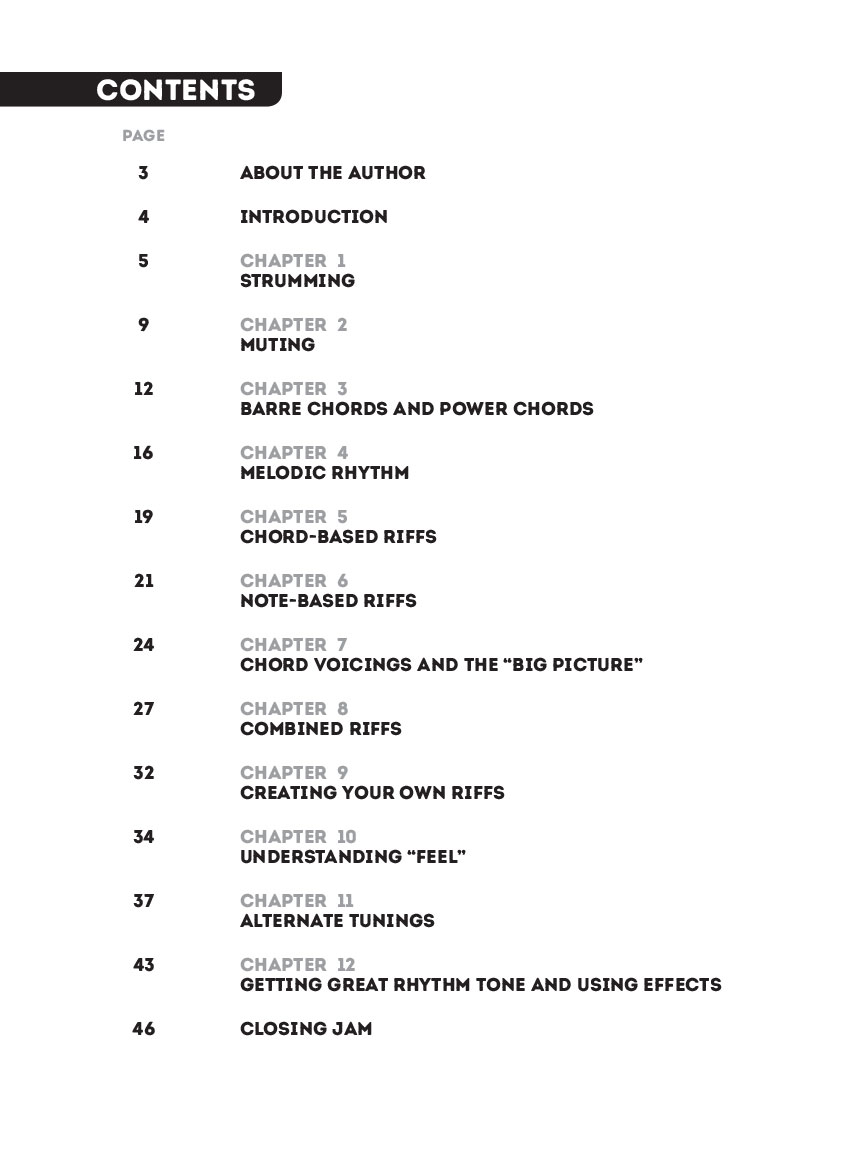 Learn to play like Jimmy Page, Malcolm Young, Keith Richards, Eddie Van Halen, John Sykes, and other guitar masters! Providing the vital backbone for countless songs, the rhythm guitarist plays a crucial role in rock music. This book guides you through the essential basics that every rhythm guitarist should know so you can learn to play like Jimmy Page, Malcolm Young, Keith Richards, Eddie Van Halen, John Sykes and other masters. Includes full-length video lessons with demonstrations of all the playing examples in the book, covering a wide range of topics including strumming, muting, chords, riffs, alternate tunings, gear and much more!