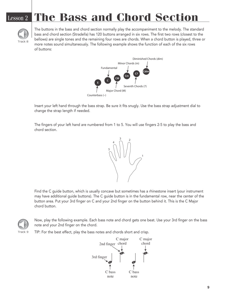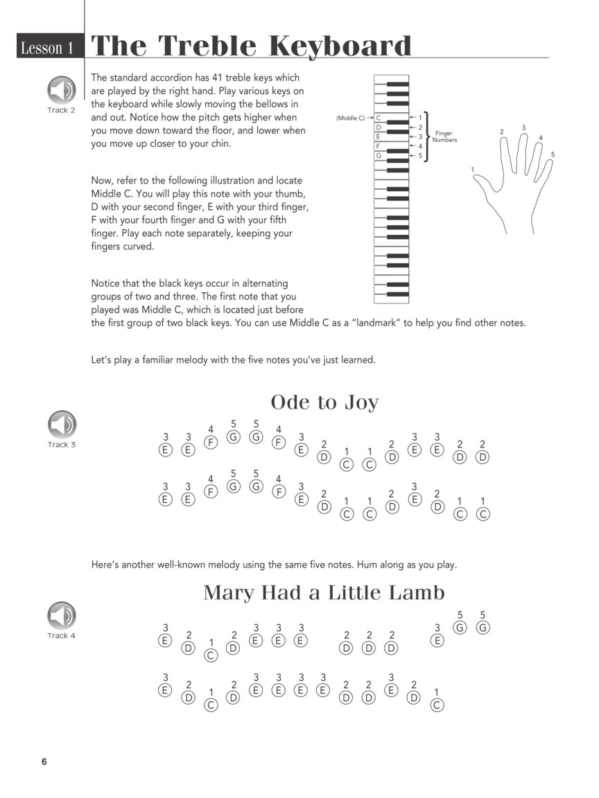This is the ultimate self-teaching method designed to offer quality instruction, terrific songs, and high-quality audio with 45 full-demo tracks. It can be used by students who want to teach themselves or by teachers for private or group instruction. Simply follow the tips and lessons in the book as you listen to the teacher in the online audio tracks. This book includes over 40 great songs and covers: songs, chords and melodies; bass and chord patterns; playing tips and techniques; music notation; and more. Learn at your own pace and open the door to the world of accordion music!The price of this book includes access to audio tracks online, for download or streaming, using the unique code inside the book. Now including PLAYBACK+, a multi-functional audio player that allows you to slow down audio without changing pitch, set loop points, change keys, pan left or right – available exclusively from Hal Leonard.