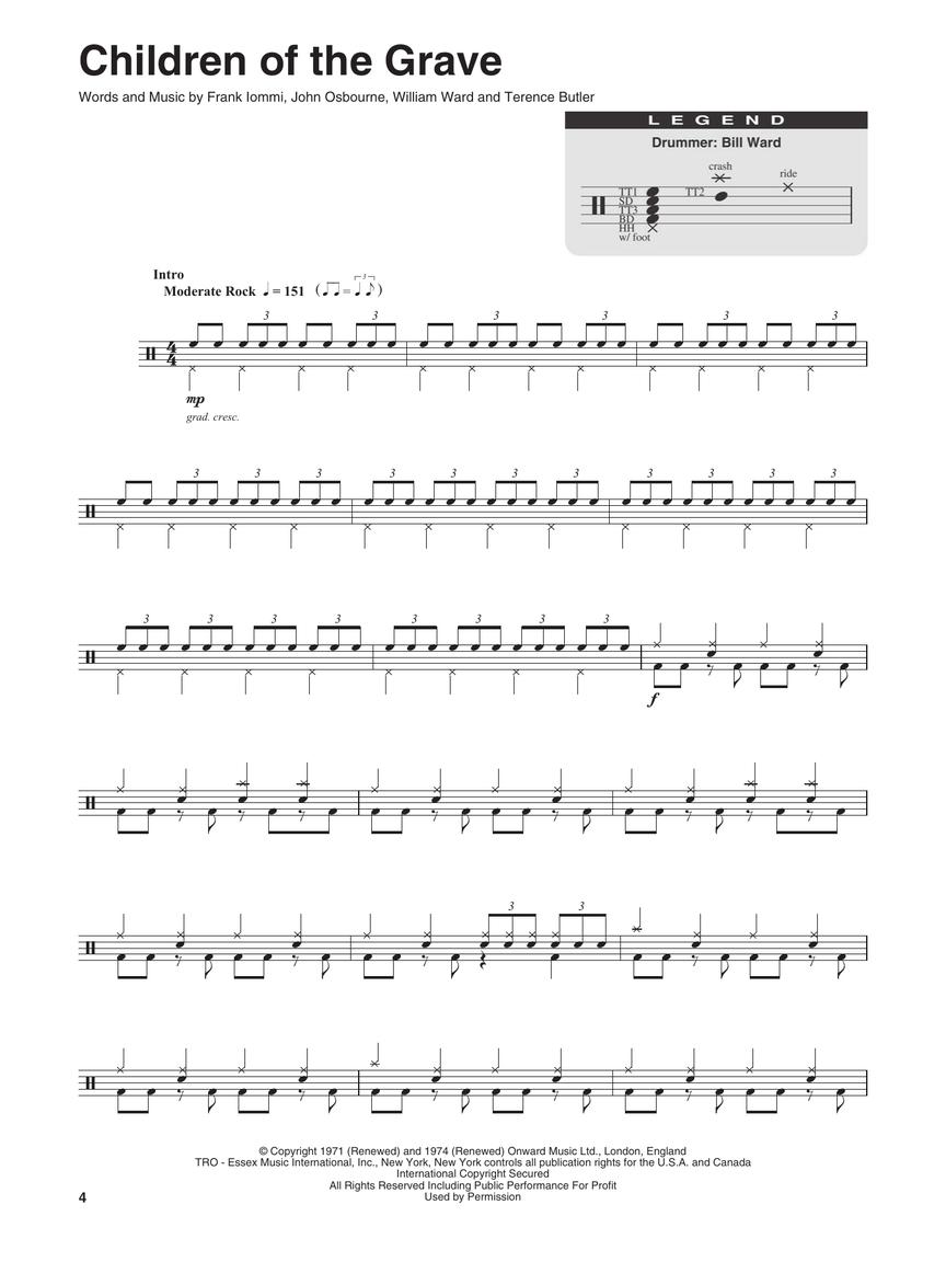 Play your favorite songs quickly and easily with the Drum Play-Along Series. Just follow the drum notation, listen to the audio to hear how the drums should sound, then play along using the separate backing tracks. The lyrics are also included for quick reference. Includes: Children of the Grave • Iron Man • N.I.B. • Paranoid • Sabbath, Bloody Sabbath • Sweet Leaf • War Pigs (Interpolating Luke's Wall).