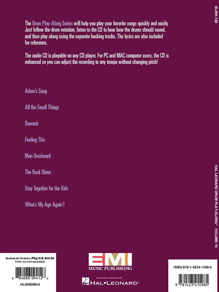 Play your favorite songs quickly and easily with the Drum Play-Along Series. Just follow the drum notation, listen to the CD to hear how the drums should sound, then play along using the separate backing tracks. The lyrics are also included for quick reference. The CD is playable on any CD player, and also enhanced so PC and Mac users can adjust the recording to any tempo without changing the pitch!