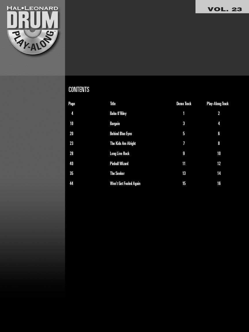 The Drum Play-Along series will help you play your favorites songs quickly and easily. Just follow the drum notation, listen to the CD to hear how the drums should sound, and then play along using the separate, sound-alike backing tracks! The lyrics are also included for reference.