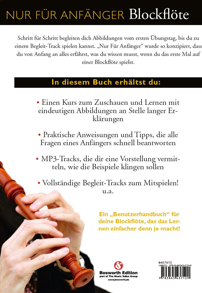 Schritt für Schritt begleiten die Abbildungen die Schüler vom ersten Übungstag an, bis er/sie zu den Begleit-Tracks mitspielen kann. Nur Für Anfänger wurde so konzipiert, dass man von Anfang an alles erfährt, was man wissen muss, wenn man das erste Mal auf einer Blockflöte spielt.