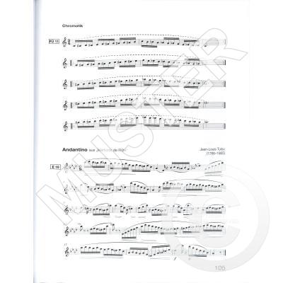 FLÖTE SPIELEN ist die neue Querflötenschule von Elisabeth Weinzierl und Edmund Wächter. Die Anfangsbände richten sich an früh beginnende SchülerInnen (ab 7) und Jugendliche oder Erwachsene, die mit kleineren Lernschritten besser zurecht kommen. Entsprechend können in den Bänden A und B auch Juniorflöten (ohne c/cis) verwendet werden. Die sorgfältige Musikauswahl streift alle Epochen und neben Klassik wurden auch Folklore, Pop und vor allem Jazz (incl. Improvisation) miteinbezogen. So wird ein großer musikalischer Erfahrungsraum geboten, der, vor allem mit Hilfe der späteren Bände, systematisch den Aufbau eines breit gefächerten Flöten-Repertoires unterstützt. Die CDs enthalten beispielhafte Interpretationen und von Live-Instrumenten eingespielte Mitspielversionen. Klavierbegleitung zu Band A-F der Flötenschule erhältlich Sy 2778. Inhalt Band E : - Neue Griffe, Erweiterung des Tonumfangs auf c1 - gis3 - Musik des Spätbarock - Flötenmusik von 1800 bis heute - Jazz - Übungen und Etüden - Grifftabelle: Trillergriffe für die 3. Oktave