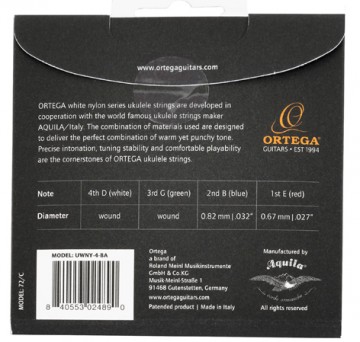 Ortega Guitars hat in Zusammenarbeit mit dem renomierten italienischen Saitenhersteller Aquila Ukulelensaiten entwickelt, die einen ausgesprochen warmen Ton mit schneller Ansprache haben. Speziell designed für Ortega Ukulelen und genau auf die Bedürfnisse von Ukulele-Spielern angepasst.