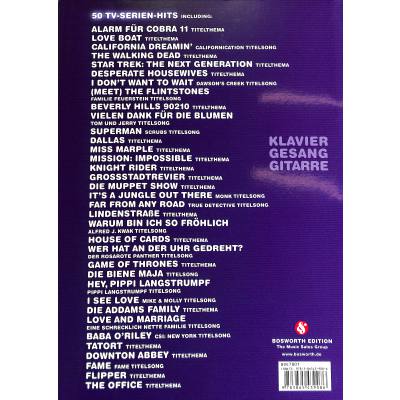 Unser für Klavier, Gesang und Gitarre arrangiertes Songbook TV-Serien-Hits bietet Fans jeden Alters die Möglichkeit, die so oft gehörten Melodien auch selbst zu spielen.